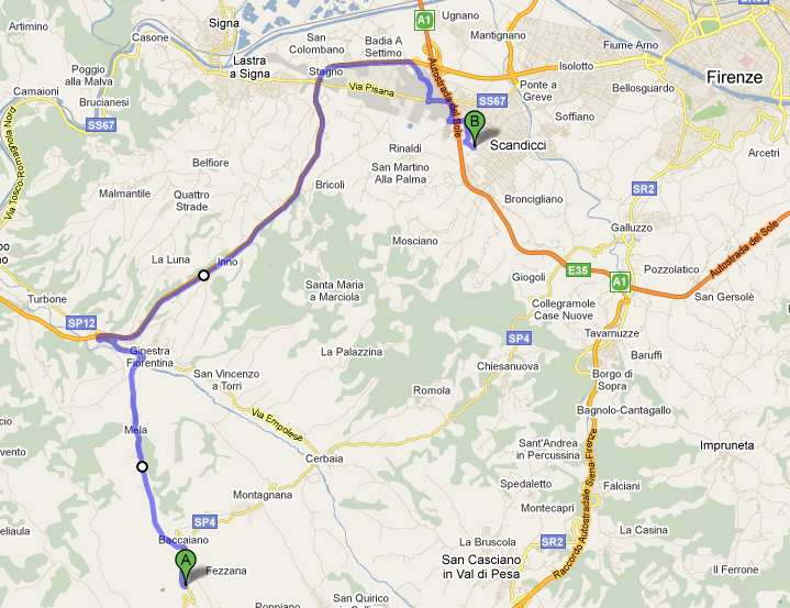 Von Pisa (70 Km): Nehmen Sie die Firenze-Pisa-Livorno in Richtung Florenz, Ausfahrt Ginestra Fiorentina und folgen Sie der gleichen Ausschilderung wie oben.
